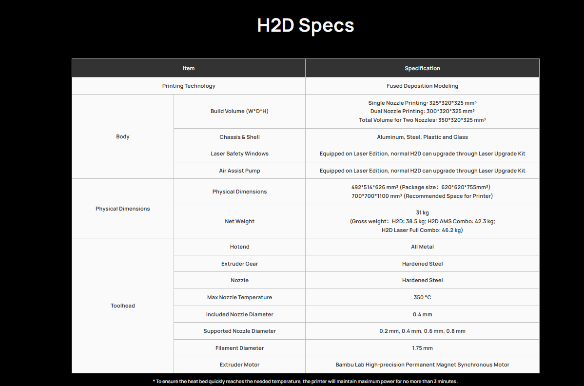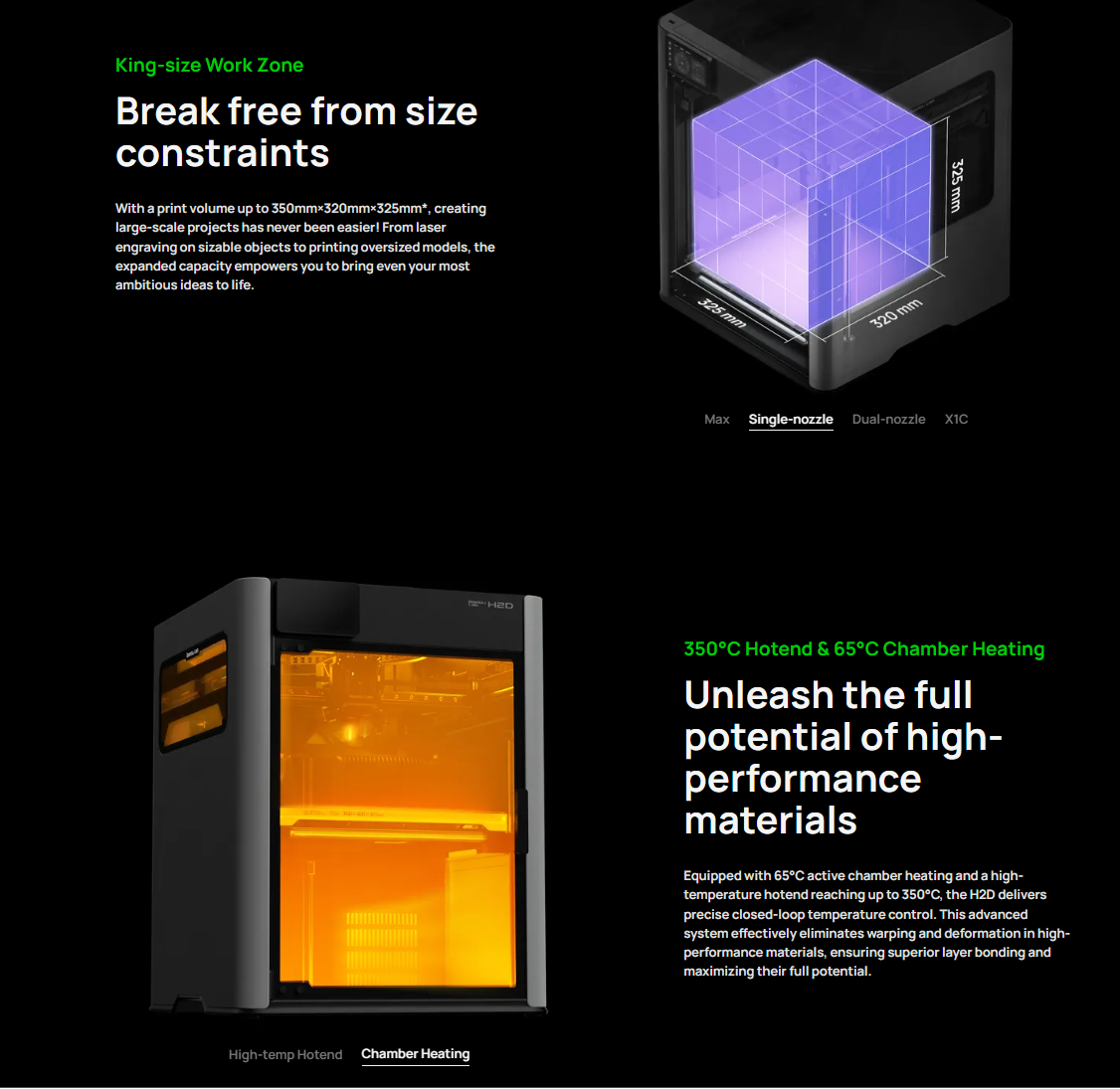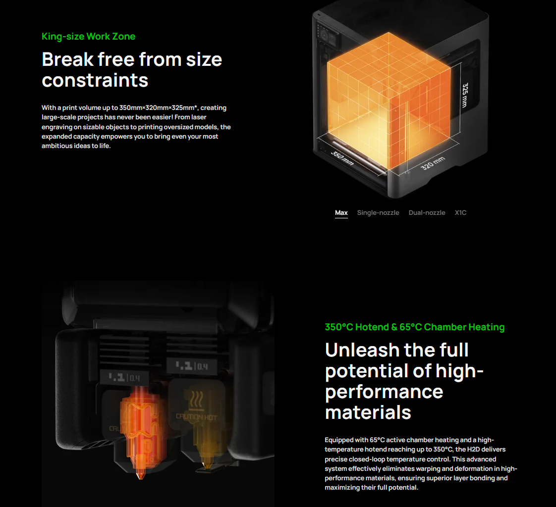 350*320*325 mm³ Print Volume