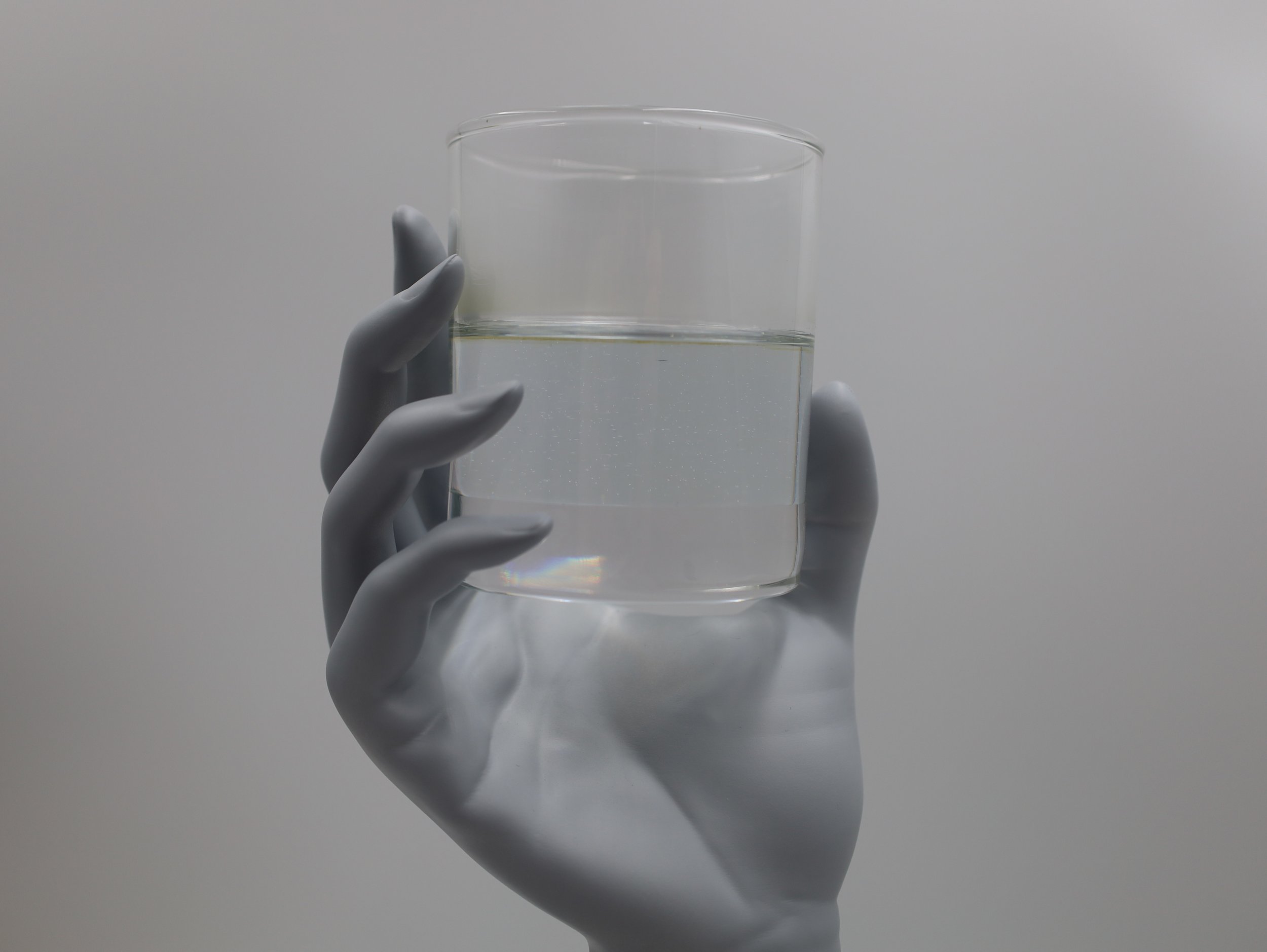 We created the hand using high resolution 3D printing, allowing us to capture smooth contours, natural finger positioning, and a realistic grip. Internal reinforcement was added to support the weight of a real glass cup without compromising the thinness and elegance of the wrist and fingers.